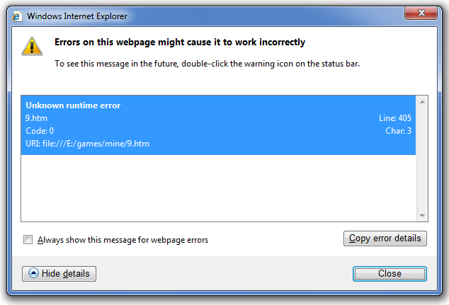 I was working the other day on a new JavaScript game for the games section. Like the majority of the developers (like the statistics show) I’m using FireFox for developing. But as the game reached the testing faze it was time to see if it was working properly in Internet Explorer.